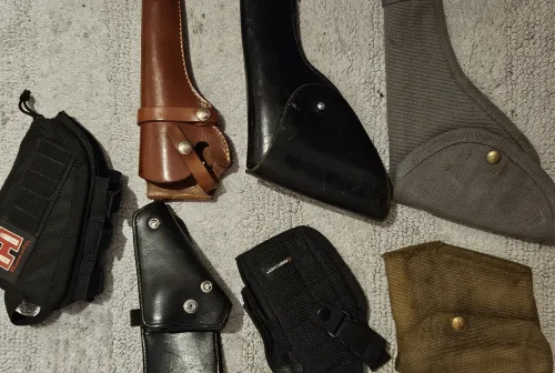 140.00 Lot of Holsters Jan 4, 2026 - 9:54 PM cz52 Selling everything as a lot, 6 pistol holsters and a Hornady Rifle Cheek Piece/Ammo Pouch.