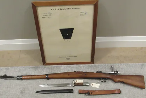 1935 Brazilian Contract Mauser "Banner" Oberndorf Rifle, 7mm, Matching Numbers, With Matching Bayonet & Factory Target, Original Sling, Muzzle Cap