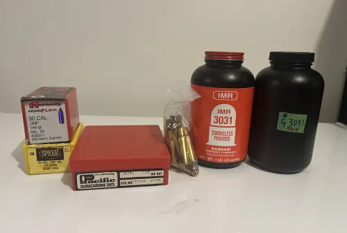 300.00 30-30 Winchester and 30-06 Springfield Reloading package Dies, bullets, powders and brass Dec 15, 2025 - 10:22 AM lilun .30-30 Winchester and 30-06 Springfield Reloading package Dies, bullets, powders and brass