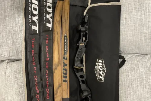 1050.00 LH Hoyt Satori Jan 9, 2026 - 5:43 PM Crsmith LH Hoyt Satori excellent condition. 19” black riser with 35lb medium maple limbs.