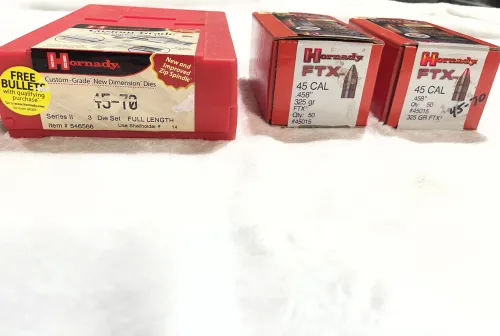 250.00 Hornady Custom Die & Bullets Jan 20, 2026 - 9:46 AM RyeGuy9491 Hornady 3 die custom grade. 45-70 cal. #14 shell holder included.