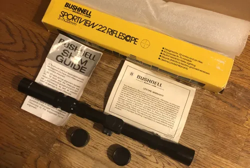 75.00 (NEW/OLD STOCK) Vintage Bushell (Bausch & Lomb) Sportview .22 Rifle Scope (3-7x20) Design for .22 Rimfire & Air Rifles. Jan 8, 2026 - 6:31 PM poor man jack (NEW/OLD STOCK) Vintage Bushell (Bausch & Lomb) Sportview .22 Rifle Scope (3-7x20) Design for