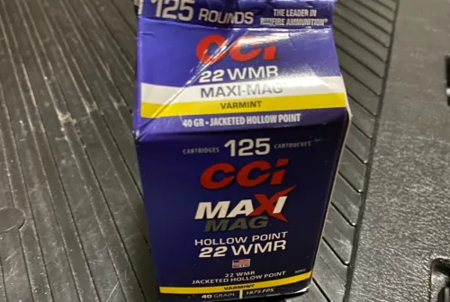 50.00 CCI 22wmr Maximag Feb 2, 2026 - 12:15 PM Noct Full box 125rds of CCI 22 Magnum Maximag JHP ammo. Local pickup only, no trades.