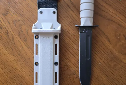 80.00 Kabar USMC knife Feb 11, 2026 - 1:31 PM B_Rad New Kabar knife. Tan color,plastic sheath, straight edge and mint condition. Local sale only.