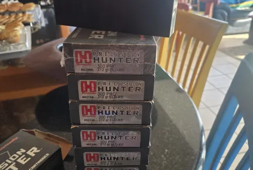 110.00 8 BOXES of Hornaday precision hunter 300prc 212gr Mar 13, 2026 - 4:28 PM Longhorn I have Hornaday Precision hunter 300 prc 212gr ELD-X FACTORY AMMO