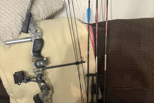 350.00 Bear bows Forkhorn Sep 9, 2025 - 4:22 PM Alphamale79 Fred bear Forkhorn compound bow with quiver / Arrows for sale .