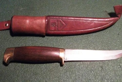 100.00 Vintage Ki Mora hunting knife Mar 4, 2026 - 2:24 PM Luthier1 Nice old KJ Mora hunting knife by KJ Erikson prior to the amalgamation of the various Mora compan