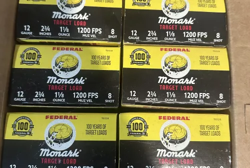 90.00 1 1/8 ounce #8 shot 12ga Federal Monark/Top Gun Skeet Sep 6, 2025 - 2:44 PM YYCShooting 6 boxes - 1 1/8 ounce #8 shot 12ga Ammo by Federal Monark Skeet(Top Gun)