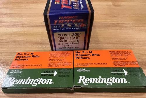 90.00 Barnes TTSX .308 180g Bullets + Remington 9.5 M Magnum Rifle Primers Sep 29, 2025 - 11:25 PM nicksny Bullets $60 Primers $30 Or All for $80 + shipping.