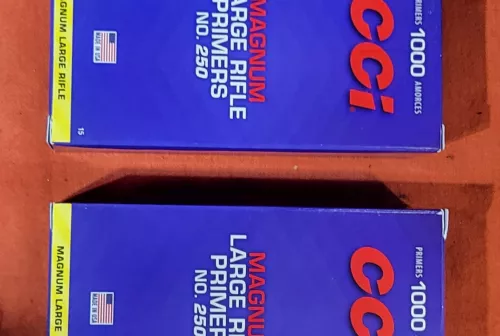 180.00 CCI #250 large rifle magnum Aug 12, 2025 - 3:07 PM Devin Pickering Bricks of CCI #250 large rifle magnum primers. $180 per brick. Many avalible.