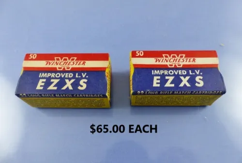 65.00 WINCHESTER EZXS 22 LR IMPROVED LV 50RD VINTAGE AMMO CLEAN 1 Jan 24, 2026 - 5:56 PM Bucky444 AMMO: WINCHESTER EZXS 22 LR IMPROVED LV CONDITION: VERY GOOD