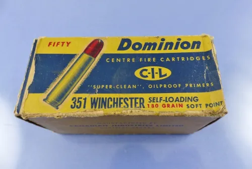 295.00 DOMINION 351 WSL 180 GR 50RD VINTAGE AMMO 295CBUG Jan 29, 2026 - 11:53 AM Bucky444 AMMO: DOMINION 351 WSL 180 GR 50RD VINTAGE CONDITION: GOOD++