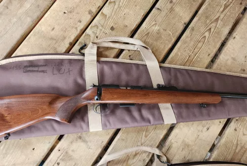 600.00 CZ 455 LUX, 22 LR Sep 14, 2025 - 3:31 PM Trevor650 CZ 455 LUX, 22LR walnut stock. Has tangent flip up rear sights for upto 200m.
