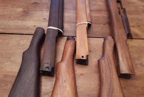 2200.00 Lee Enfield Forewoods ,Handguards, Buttstocks, WWI Sling, REL Optics Parts Box Dec 11, 2025 - 7:48 AM BillyGreen 1)1 #4 Mk I Lee Enfield Forend Dark Walnut, many dings scratches and 2 minor cracks $350 .+