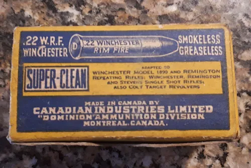 60.00 22 WRF CIL Vintage Ammo Apr 8, 2026 - 7:10 AM hdroadking 2 boxes of C.I.L. Super Clean 22 WRF ammo.