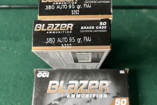 100.00 Blazer 380 auto ammo Dec 15, 2025 - 7:01 AM Roid I have 3 boxes of 50 Blazer 380 auto brass cased 95gr FMJ ammunition for sale.