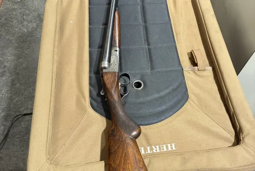 340.00 SxS 12 gauge Feb 16, 2026 - 1:36 PM Blownic Belgian made double barrel 12 gauge shotgun. 30” barrels, shiny bores, sling swivels.