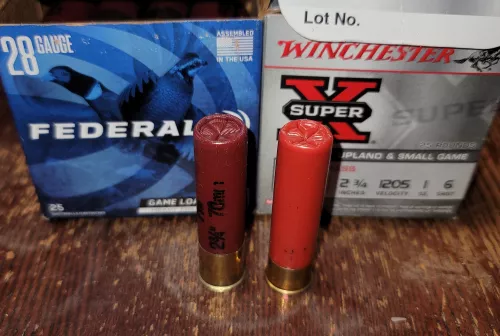 45.00 28gauge Sep 4, 2025 - 2:00 PM CPS24 Winchester super x high brass 2 3/4" 1205 velocity 1 Oz #6 shot and Federal 1 ounce 7-1/2"
