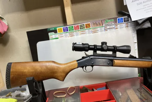 850.00 H&R Handirifle 45-70 Dec 11, 2025 - 10:06 AM sxssteve Very nice single shot Handirifle in 45-70,Bushnell legend 1.75x5 scope.