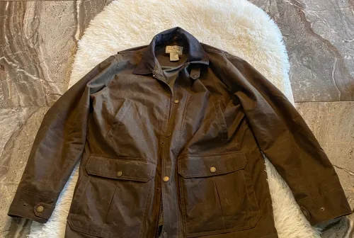 390.00 Waxed Canvas Upland Hunting Coat Feb 26, 2026 - 10:30 AM Grouse Hunter LL Bean men's double waxed cotton upland hunting coat.