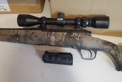 500.00 Savage Axis 30-06 Feb 15, 2026 - 3:33 PM Billylaz Savage axis xp bolt action rifle with strata timberland camo stock Chambered in 30-06