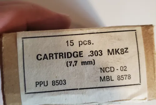 20.00 303 mk8z Feb 15, 2026 - 5:31 PM Billylaz 15 round box of 303 mk8z my research shows its not suitable to be fired from an enfield smle but