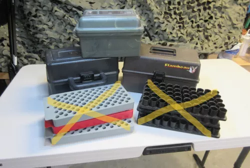 15.00 MTM - Flambeau - 12 ga Ammo Cases Oct 1, 2025 - 10:56 AM steyrman 1- Flambeau 100 round (12 ga ) case w/trays vg cond. $15.00