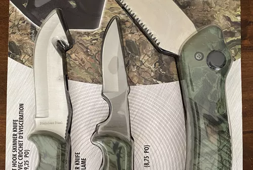30.00 3 pc Hunting Knife Set with case Sep 16, 2025 - 6:09 PM John Lefebvre Brand New: Never opened. Made by Olympia Tools. Retails at Canadian Tire for $74.99 (+ taxes).