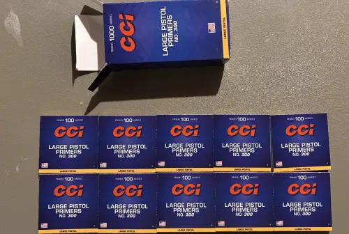 100.00 CCI Large Pistol Primer #300 Jan 16, 2026 - 8:41 PM SouthCentral1 Brick of 1000 primers. See photo’s. No trades.