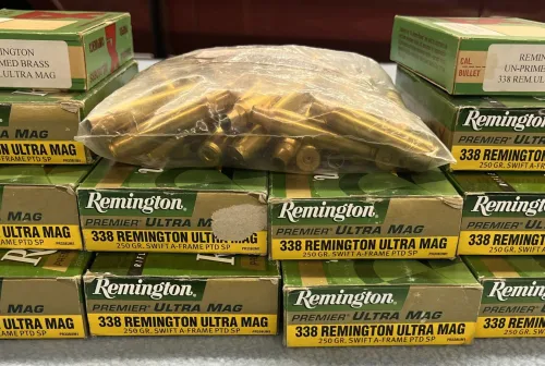 900.00 338 Ulatra Mag Dec 12, 2025 - 12:41 PM trump 338 Ultra Mag Lifetime Ammo and Brass. New Factory.