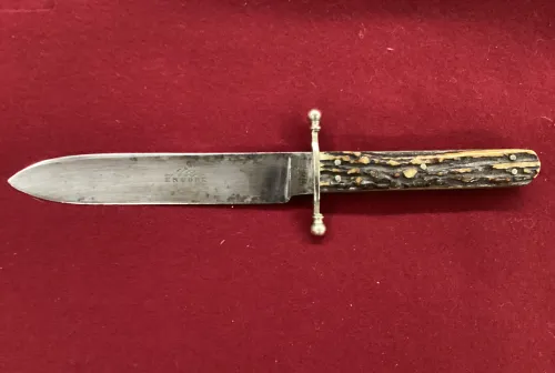 750.00 Civil War Bowie Knife Feb 18, 2026 - 1:36 PM hgwt Made by Thomas Turner & Co . Sheffield . 6 inch spear point blade marked Encore.