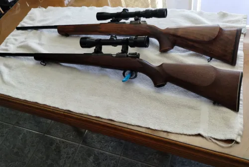 For sale 2- 6.5x55, Carl Gustaf ,25 inch barrel, bottom, Bushnell 3x9x40, scope m,Internal mag, M