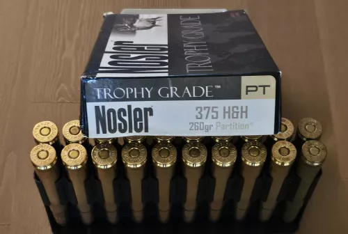 130.00 375 H&H Nosler Oct 16, 2025 - 4:31 PM Flop Have a single box of 375 H&H Nosler Trophy Grade 260 Gr Partition.