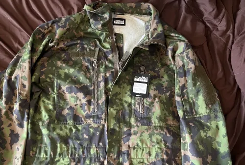 200.00 Finnish M05 woodland military camo Apr 15, 2026 - 9:50 AM Thrash-metal-fan1201 Brand new never worn Finnish M05 woodland camo jacket in Xtra-Large Long.