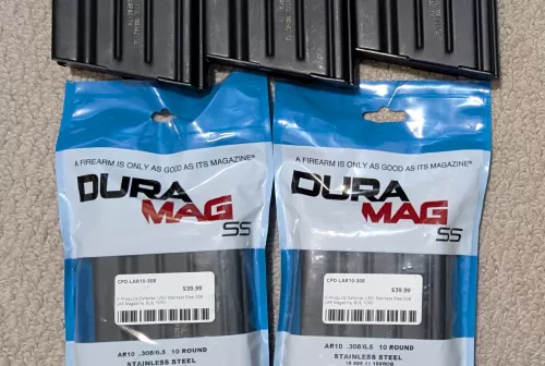 35.00 Duramag C-Products Defense, USGI Stainless Steel 308 LAR Magazine Aug 21, 2025 - 8:39 PM firebat LAR-10 Pistol Magazines, 10-rd capacity. 5 total, $35 each.