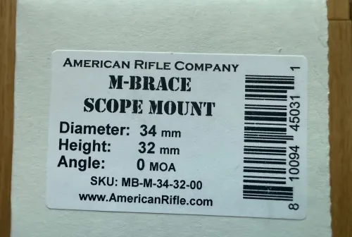375.00 American Rifle Company M-Brace Mount 34mm 32mm high 0 MOA Feb 8, 2026 - 8:29 AM Husky1 American Rifle Company M-Brace Mount 34mm 32mm high 0 MOA. Brand new and unused.