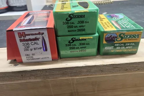 50.00 338 bullets Sierra and Hornady Jan 5, 2026 - 10:52 AM Kschoen123 $50 per box, I have: Hornady 285 bthp - one box 44 left