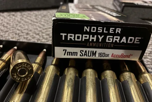 100.00 7 SAUM Nosler 160 Accubond Jan 19, 2026 - 9:58 PM jdekker Four boxes of factory 7 SAUM Nosler 160 Accubond.