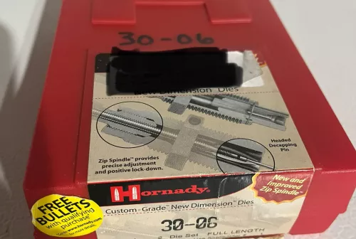 60.00 Hornady 30-06 FL Die set. Nov 25, 2025 - 3:35 PM S. Caravan Hornady Custom Grade Die set for 30-06 Sprg. Excellent Shape.