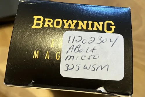 150.00 Browning Abolt Micro .325wsm magazine Dec 5, 2025 - 2:31 PM 5-bluedogs New in box Abolt Micro .325 wsm magazine. Does not fit regular Abolt. $150 shipped.