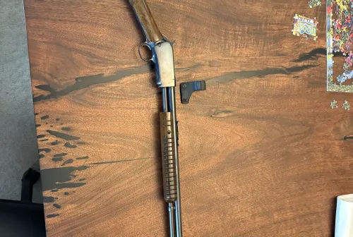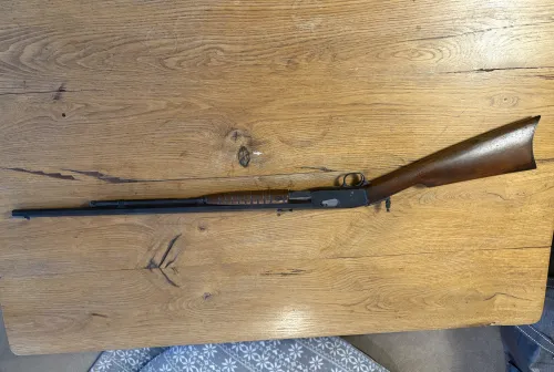 SOLD 750.00 Remington Model 12 Pump .22 Octagonal Barrel with Peep Sight Jan 31, 2026 - 3:08 PM 3screwsloose NO TRADES. This is one sweetheart of a classic rifle.