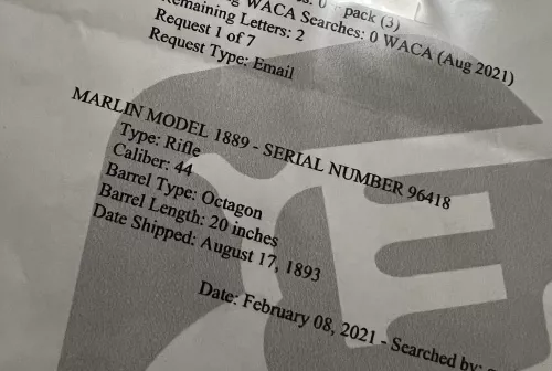 2500.00 Special order Marlin 1889 short rifle with factory letter Sep 6, 2025 - 7:06 PM Lever Up for grabs is a Marlin 1889 short rifle with 20 inch barrel chambered in 44-40 calibre.