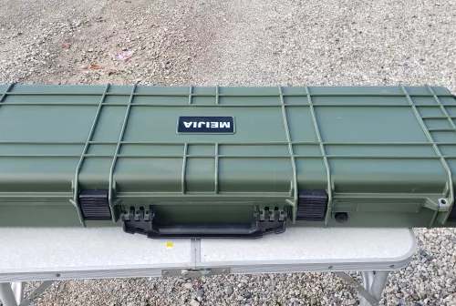 160.00 Rifle Case - Green Oct 23, 2025 - 3:57 PM JohnH Brand New Waterproof, rolling wheels and 2 handles Inside measures 46" x 13.5"