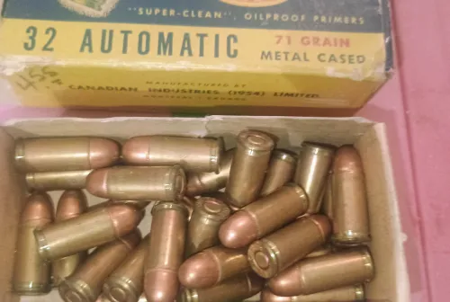 Partial box of vintage dominion 32 auto ammo. Will ship Western Canada