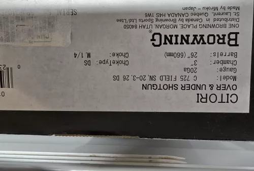 3000.00 Citory Browning Shotgun for sale Dec 7, 2025 - 6:33 PM Hkassis Model: C 725 FIELD SN, 20-3 26 DS Gauge: 20Ga Chamber: 3"