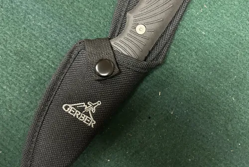 75.00 Gerber sheath knife Jan 1, 2026 - 3:12 PM Arthur M. Treffry Gerber sheath knife in V.G. condition. Unused. $75.00 plus shipping. Text is best.