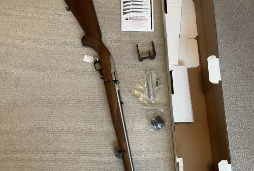 1100.00 Ruger 10/22 Mannlicher - Polished Stainless, New Unfired Oct 1, 2025 - 12:31 PM Dragon6177 Brand new Ruger 10/22 Mannlicher Stainless rifle unfired with box and shown accessories and walnu