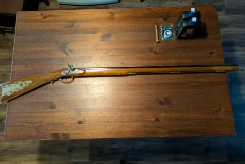 650.00 Kentucky long rifle Oct 27, 2025 - 6:37 AM Blake Taylor Italian made cap lock Kentucky long rifle, 50 caliber, rifle is in great shape and shoots well, c