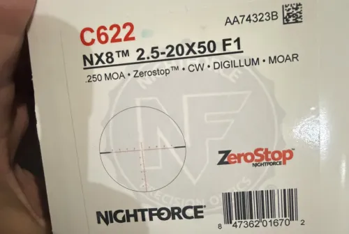 SOLD 2600.00 Nightforce NX8 C622 Jan 27, 2026 - 4:38 PM glock123 $2600 Firm. Nightforce C622 NX8 2.5-20x50 MOAR reticle F1.