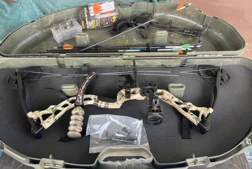 400.00 diamond compound bow Oct 23, 2025 - 7:22 PM Visso Apex Gear Bow Sight, wrist strap, release trigger, draw weight 5-70 lbs, draw length 13-30 inches